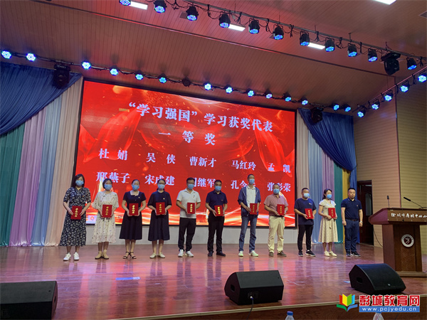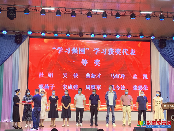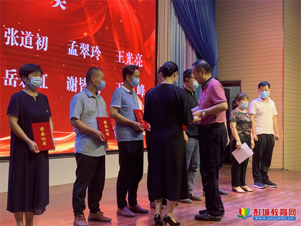 會(huì)議在莊嚴(yán)的國歌聲中開始了。首先,房村鎮(zhèn)小學(xué)中心校黨總支委員,房村鎮(zhèn)中心小學(xué)校長、黨支部書記張虎同志宣讀表彰決定。房村鎮(zhèn)小學(xué)中心校黨總支書記、校長劉軍同志和銅山區(qū)教育黨委辦公室主任張海朋同志分別為獲得一二等獎(jiǎng)的代表進(jìn)行頒獎(jiǎng)。