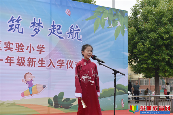剛剛踏入校門的小同學們背著小小書包,如同背著滿滿的希望,相信他們是最棒的!一年級新生代表李曼瑜同學為大家發(fā)言。