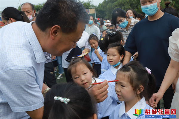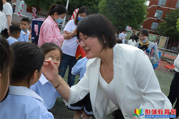 一粒朱砂,落在孩子的眉心。在古代,學童入學讀書前,啟蒙師長用紅色的朱砂在學子們的額頭正中點上紅痣,稱為“開天眼”。所以叫“朱砂啟智”。新區(qū)實小校領導、一年級班主任與科任老師到學生場地為孩子們點上一顆顆紅“智”,它寓意著喚醒,寓意著激勵。新區(qū)實小的小同學們,愿你們耳聰目明,用勤奮書寫智慧的篇章!