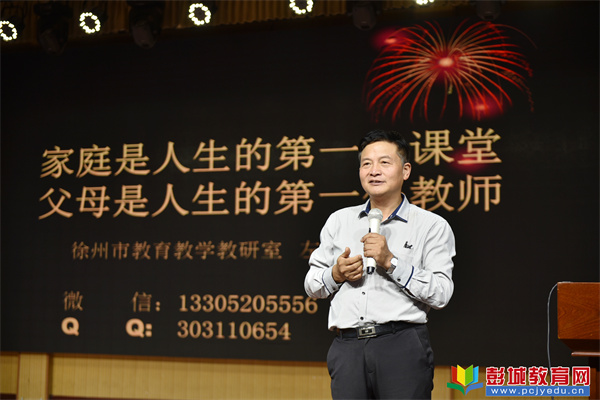 儀式后學校組織學生家長前往報告廳參加專題培訓,本次活動由薛娟校長主持,邀請了左兆軍老師做家校共育的專題講座。左老師是徐州市教研室綜合實踐活動、小學科學、道德與法治學科研究員,中國陶行知研究會講師團秘書長、徐州市發(fā)明學會副會長,部編《道德與法治》教材編寫組核心成員,江蘇省家教委員會特聘專家。