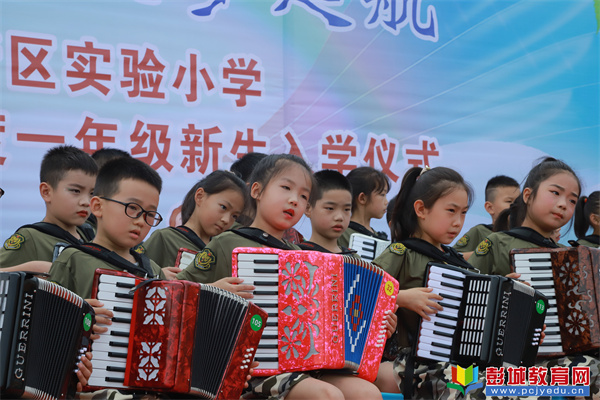 新區(qū)實小霍納手風琴社團首先帶來了手風琴演奏《幸福童年》。