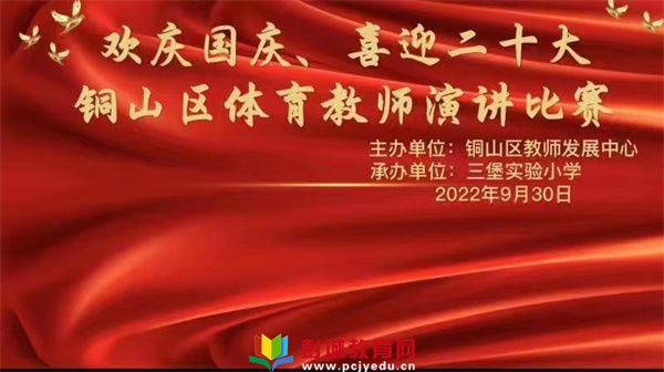 為慶祝國(guó)慶、喜迎黨的二十大,激發(fā)中小學(xué)體育教師的奮斗激情和創(chuàng)造活力,2022年9月30日上午銅山區(qū)“慶國(guó)慶、喜迎二十大,我是體育教師,我為學(xué)校體育代言”的主題演講比賽在三堡實(shí)驗(yàn)小學(xué)舉行,本次比賽采用騰訊會(huì)議形式開(kāi)展。