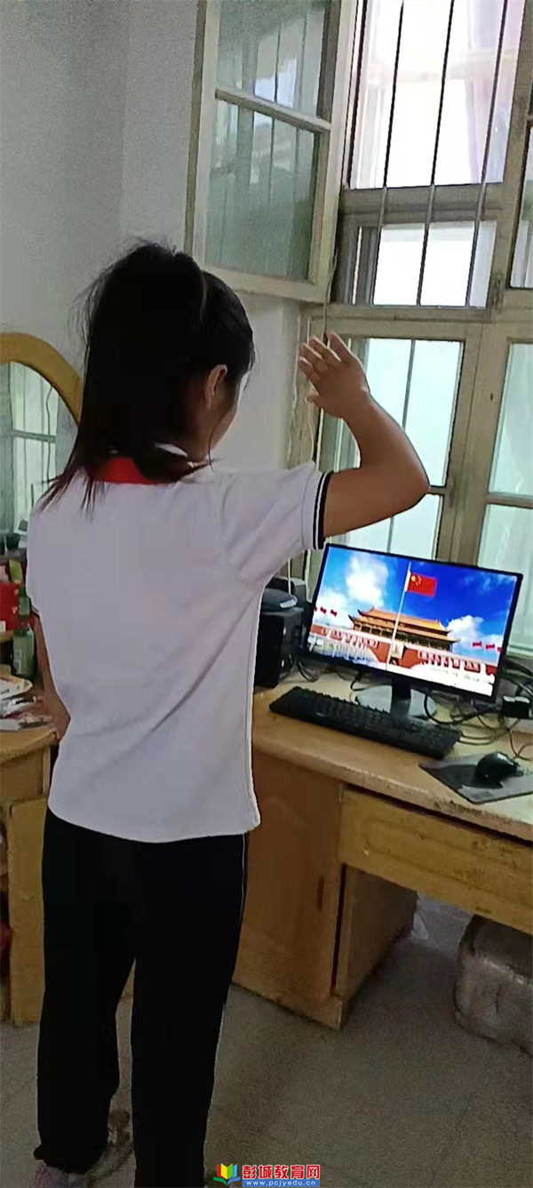 線上“向國(guó)旗敬禮”教育活動(dòng)中,激發(fā)了學(xué)生的愛(ài)國(guó)情懷,將愛(ài)國(guó)主義教育深深扎根在他們的心靈深處。