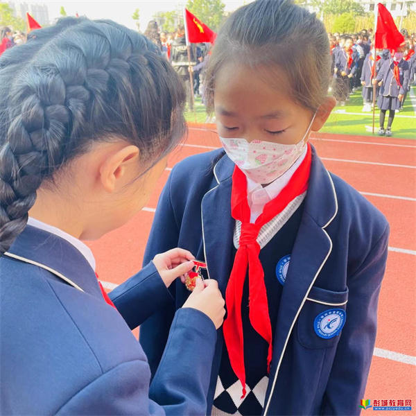 隨后,大隊輔導(dǎo)員李老師宣布:二1中隊張若橙等30名隊員、二2中隊李俊洋等30名隊員、二3中隊段依依等29名隊員、二4中隊郝大喆等29名隊員、二5中隊周家祥等28名隊員、二6中隊趙云笛等21名隊員、二7中隊劉恒瑀等29名隊員、二8中隊田雨澤等28名隊員、二9中隊張書欣等29名隊員、二10中隊魏喬妤等29名隊員成為中國少年先鋒隊隊員。