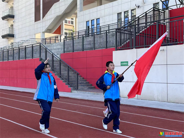 伴隨著嘹亮的隊歌,少先隊旗手與護(hù)旗手們邁著整齊的步伐,精神抖擻地進(jìn)行著莊嚴(yán)的出旗儀式,少先隊入隊儀式由此拉開帷幕。二年級282名新隊員被批準(zhǔn)加入中國少年先鋒隊,成為一名光榮的少先隊員。入隊儀式在雄壯有力的出旗曲中拉開序幕,出旗手是來自六3中隊的李以勒,護(hù)旗手是來自六2中隊的閆雅琪和五1中隊的董諾,少先隊員們敬隊禮向隊旗致敬。接著,隊員們在大隊委徐若曦的指揮下齊唱《中國少年先鋒隊隊歌》。