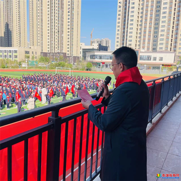 黨組織代表曹校長講話,校長希望隊員們能從小體會“茍利國家生死以,豈因禍福避趨之”的大愛情懷,從小強(qiáng)健體魄,自強(qiáng)不息,不斷進(jìn)取,在星星火炬的引領(lǐng)下茁壯成長!