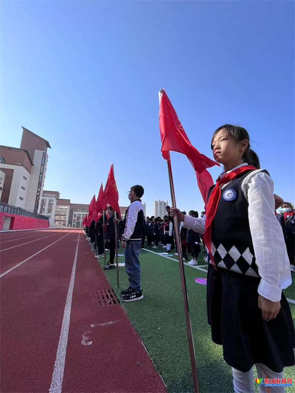 伴隨著出旗手和護(hù)旗手的整齊步伐,結(jié)束了今天的入隊儀式。通過此次隆重的儀式,少先隊員接受了少先隊知識教育,明白了少年先鋒隊的崇高意義。同時,也擴(kuò)大了少先隊組織,增添了新的力量。隊員們無比幸福的眼神和自豪的姿勢告訴我們,他們定會在星星火炬的引領(lǐng)下,牢記黨的教誨,踐行價值觀,共筑中國夢!我們堅信,少先隊員定能長才干,立志向,做搏擊風(fēng)雨之雄鷹,用自己的熱情和智慧為隊旗增添更加亮麗的色彩。