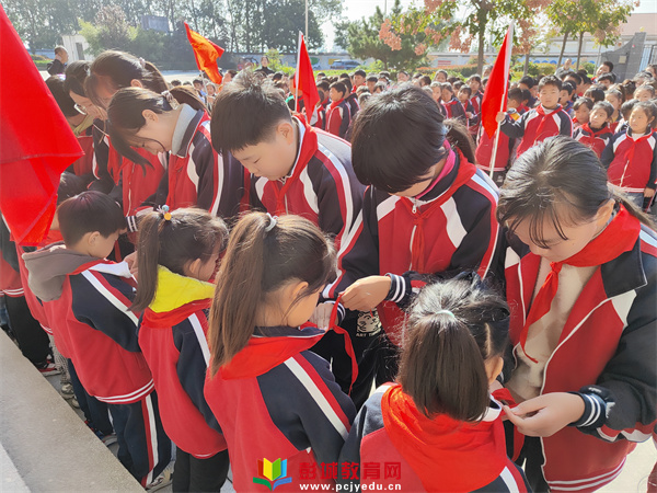 “我們是共產(chǎn)主義接班人,繼承革命先輩的光榮傳統(tǒng),愛祖國,愛人民,鮮艷的紅領(lǐng)巾飄揚(yáng)在前胸……”伴隨著《中國少年先鋒隊(duì)隊(duì)歌》,在少先隊(duì)建隊(duì)日來臨之際,銅山區(qū)黃集鎮(zhèn)鄆城小學(xué)于10月12日,舉行了少先隊(duì)分批入隊(duì)儀式。
