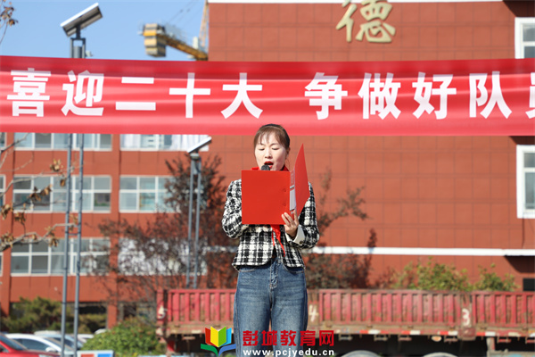 輔導(dǎo)員代表耿紅老師也表達(dá)了對(duì)全體新隊(duì)員殷切的希望,愿隊(duì)員們繼承先輩的宏愿,牢記神圣的使命,努力學(xué)習(xí),時(shí)刻準(zhǔn)備著為共產(chǎn)主義事業(yè)奮斗!