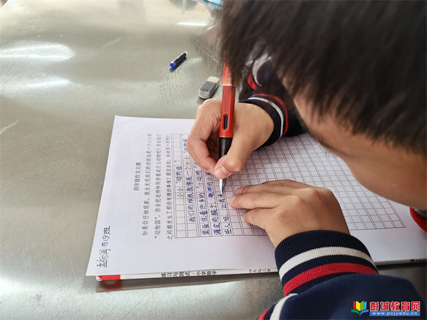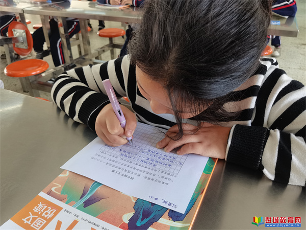在作文比賽現(xiàn)場,比賽選手們個個鎮(zhèn)定從容,滿懷信心。同學(xué)們時而文思泉涌,奮筆疾書;時而字斟句酌,凝思遐想……空白的作文紙上,一行行雋秀而工整的字跡躍然紙上,匯成了一張張美麗的答卷。孩子們憑著對世界萬物的理解,認(rèn)真審題,從不同視角用文字寫下了自己的所思、所感、所悟,字里行間洋溢著童真童趣,流露出真情實感。