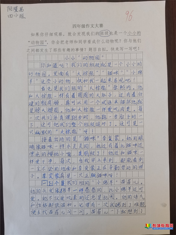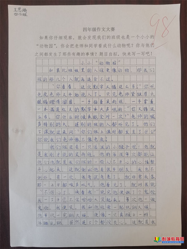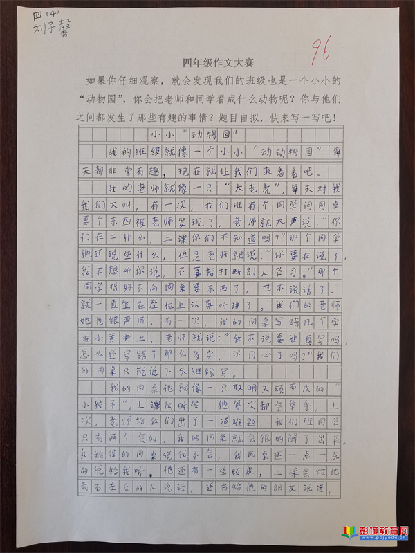 此次比賽本著公平、公正、公開的原則,結(jié)合部編小學(xué)語文四年級上冊的內(nèi)容安排,由四年級語文教研組出題,現(xiàn)場公布競賽題目及習(xí)作要求,每班選出10人參賽。