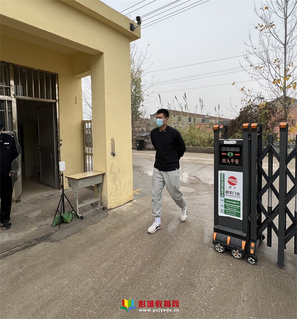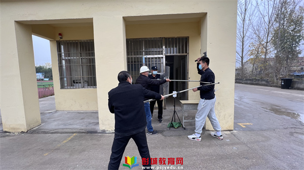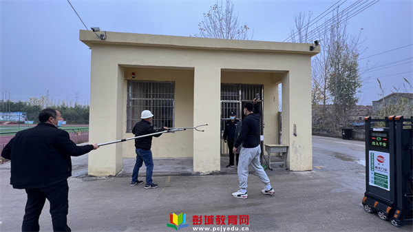 校門口保安發(fā)現(xiàn)“歹徒”持有兇器后,迅速拿起防暴武器阻攔并給予制服。