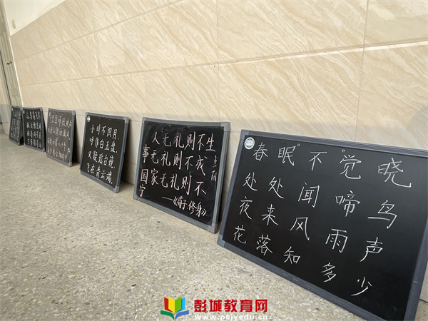 海棠校區(qū)的老師們每周都書寫硬筆書法和小黑板字作品,利用課余時間堅持練習(xí)書法,并積極探討,相互學(xué)習(xí)。在討論中,大家在提高對書法的認(rèn)知與興趣的同時,也提高了老師們的書寫能力,提高了文化修養(yǎng)。