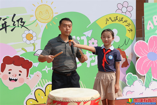 三聲清脆而有力的鼓聲在校園中回蕩,“擊鼓明志” 環(huán)節(jié)將活動(dòng)推向高潮。楊校長(zhǎng)雙手握住鼓槌,用力擊鼓三聲?!耙粨艄模⑦h(yuǎn)志;二擊鼓,勤學(xué)習(xí);三擊鼓,勇追夢(mèng)!” 隨著口令,孩子們的鼓聲整齊而響亮,每一聲鼓響都象征著他們對(duì)未來的憧憬,也宣告著他們 “志存高遠(yuǎn)、努力拼搏” 的決心。鼓聲里,有孩子們的天真夢(mèng)想,更有老師們與家長(zhǎng)們的滿心期待。