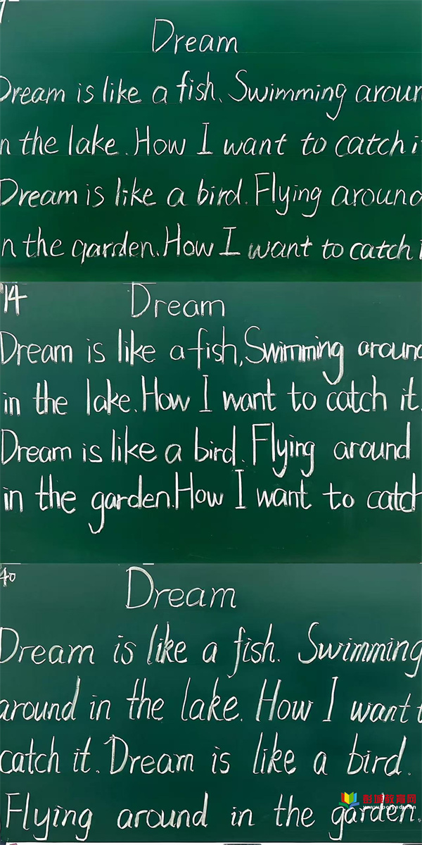 比賽現(xiàn)場,教師們凝神聚氣,運筆自如。十分鐘內(nèi),一塊塊小黑板上綻放出各具特色的書法藝術(shù):有的瀟灑飄逸如鳳舞九天,有的蒼勁有力似龍游四海,充分展現(xiàn)了青年教師們扎實的基本功和嚴(yán)謹(jǐn)求實的教學(xué)態(tài)度。