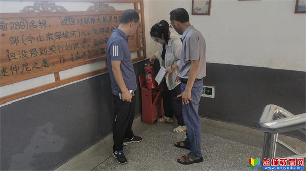 在學(xué)校主干道邊,陳超校長(zhǎng)仔細(xì)查看了校園內(nèi)的消防設(shè)施,包括滅火器是否安全且能正常使用,檢查了疏散通道和安全出口是否暢通無(wú)阻,疏散指示標(biāo)志和應(yīng)急照明是否完好有效。
