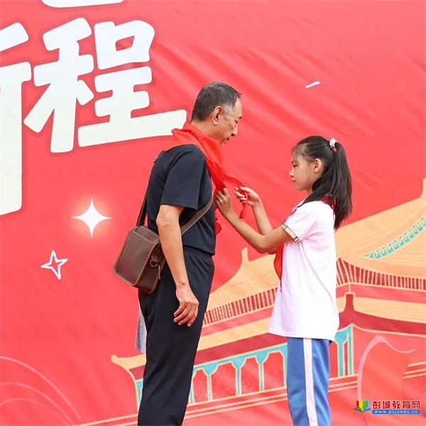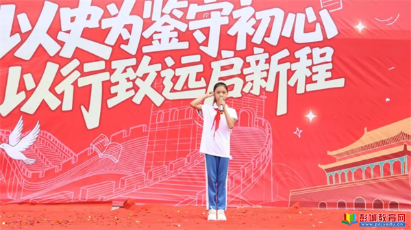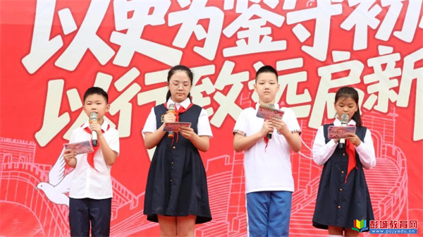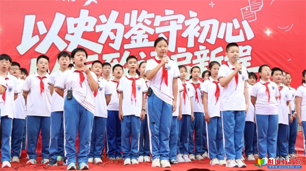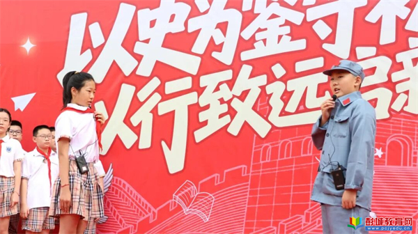 ??典禮還精彩呈現(xiàn)了啟星學(xué)子多元發(fā)展的良好風(fēng)貌。六1中隊(duì)的大合唱《沒有共產(chǎn)黨就沒有新中國》鏗鏘豪邁,六2中隊(duì)的詩朗誦《這盛世如您所愿》深情涌動(dòng),“小主持人”社團(tuán)成員朱子逸瑤同學(xué)帶來的淮海戰(zhàn)役故事分享,生動(dòng)展現(xiàn)學(xué)?!懊總€(gè)學(xué)生都是一顆閃亮的星”的教育理念。