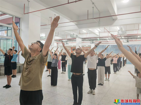 高溫天氣,參訓教師們汗水順著臉頰滑落,卻沒人停下腳步。教師們列隊練習,伸展、扭轉、跳躍,重復多輪后,衣衫被汗水浸透,貼在后背勾勒出專注的輪廓,但每個人都格外認真,只為守護學生運動安全的初心。