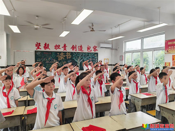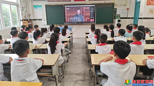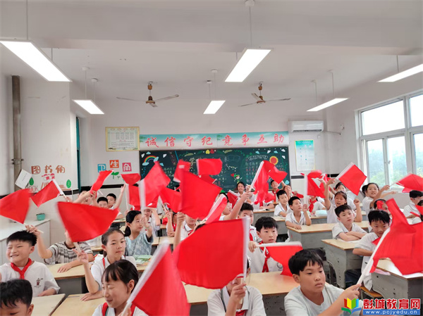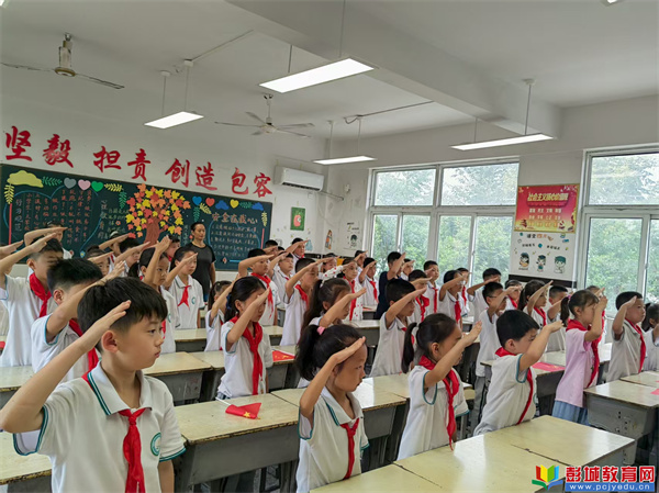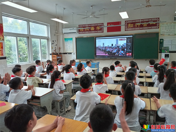 活動(dòng)開始前,各班級(jí)老師提前布置好觀看場(chǎng)地,調(diào)試好播放設(shè)備,并向?qū)W生簡(jiǎn)要介紹了閱兵儀式的意義。上午9時(shí)許,隨著直播信號(hào)的切入,原本喧鬧的教室瞬間安靜下來(lái)。孩子們挺直腰背、坐姿端正,胸前鮮艷的紅領(lǐng)巾與專注的眼神相互映襯,充滿了對(duì)儀式的期待與敬意。