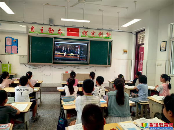 2025年9月3日上午,徐州市銅山區(qū)大彭鎮(zhèn)雁群小學精心組織全體學生集中觀看紀念中國人民抗日戰(zhàn)爭暨世界反法西斯戰(zhàn)爭勝利80周年紀念大會及閱兵儀式直播,以直觀生動的方式開展愛國主義教育,讓孩子們在震撼與感動中厚植家國情懷。