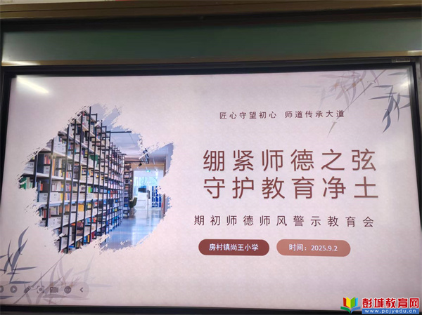 為進一步加強教師隊伍建設,強化師德師風育人根基,明確教師職業(yè)行為規(guī)范,9月2日,房村鎮(zhèn)尚王小學組織全體教師開展新學期師德師風專題培訓活動,為新學期教育教學工作筑牢思想根基。