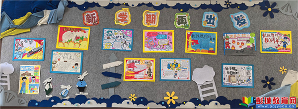 “新學期新氣象” 板塊,孩子們用絢麗的色彩和稚嫩的筆觸描繪了對新學期的美好憧憬。一艘艘揚帆的航船、一顆顆茁壯的樹苗、一個個燦爛的笑臉,配以“你好,新學期!”“我們開學啦!”等熱情洋溢的口號,充滿了蓬勃的朝氣與無限的希望。