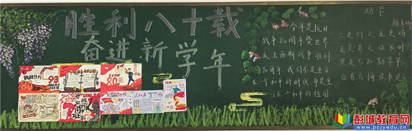 “銘記歷史,珍愛和平——紀念抗戰(zhàn)勝利80周年” 主題板塊莊重而深刻。雄偉的天安門、翱翔的和平鴿、英勇的戰(zhàn)士剪影,與一段段歷史簡介相結(jié)合,無聲地訴說著那段烽火歲月,深深寄托了同學們對革命先烈的崇高敬意與對和平年代的倍加珍惜,是一堂生動的愛國主義教育課。