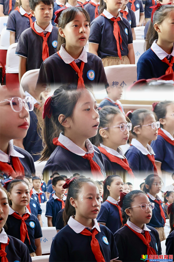 活動最后,柳新實驗小學(xué)近兩百名師生齊聚一堂,懷著激動、敬意之情靜心聆聽、積極互動,在全場師生共唱《我和我的祖國》中落下帷幕。