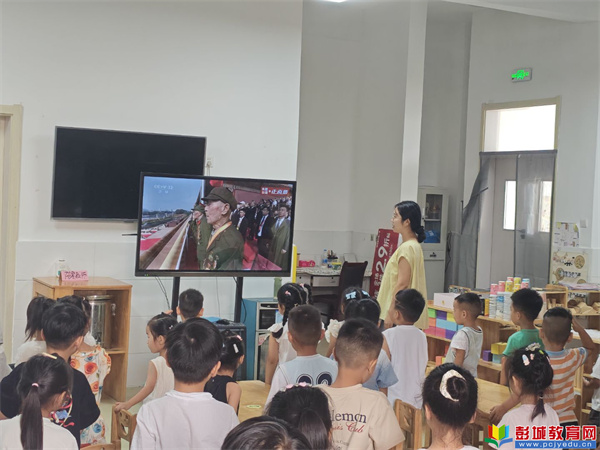 伴隨嘹亮的口號、轟鳴的禮炮,上午九點,老師與小朋友們共同觀看中國人民抗日戰(zhàn)爭暨世界反法西斯戰(zhàn)爭勝利80周年大閱兵直播??矗£戃姷木G、海軍的白、空軍的藍,一列列一隊隊在此起彼伏的口令聲中做著不同的動作,充分展現(xiàn)受閱官兵意氣風發(fā)、威嚴彪悍的精神風貌。整齊的隊伍,威嚴的軍容,歡呼的人們,無不顯示出這一次慶典的隆重與壯觀。