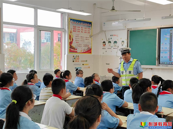活動開始前,驛城實驗小學(xué)的老師們已提前組織學(xué)生有序坐好,教室內(nèi)張貼著醒目的交通安全宣傳海報,氛圍既嚴(yán)肅又充滿期待。同學(xué)們個個精神飽滿,眼神中滿是對交通安全知識的渴望,紛紛挺直小身板,等待著董隊長的到來。