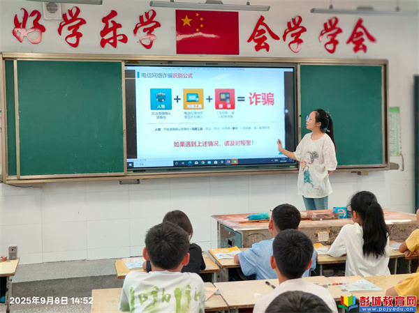 班會伊始,班主任們結(jié)合小學生的年齡特點和認知水平,通過生動形象的PPT、趣味動畫短片等形式,向同學們介紹了電信詐騙的常見類型。從“冒充熟人借錢”“中獎信息詐騙”到“游戲幣充值陷阱”,一個個貼近生活的案例被娓娓道來,讓孩子們直觀地了解到詐騙分子的慣用伎倆。在講解“冒充老師索要學雜費”這一案例時,班主任特意模擬了詐騙電話的對話場景,當“騙子”用急促的語氣要求“家長” 立即轉(zhuǎn)賬時,不少同學紛紛舉手提醒:“這是假的,要先跟爸爸媽媽和老師確認!”