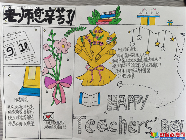 本次活動(dòng)得到了劉集鎮(zhèn)李莊小學(xué)全體學(xué)生的積極響應(yīng)和熱情參與。同學(xué)們利用課余時(shí)間,圍繞主題,精心搜集資料、巧妙設(shè)計(jì)版面,用手中的畫筆和絢麗的色彩,傾情描繪出一幅幅內(nèi)容豐富、情感真摯的優(yōu)秀作品。手抄報(bào)作品形式多樣,設(shè)計(jì)新穎,有的回顧了與老師相處的感人瞬間,有的摘錄了贊美教師的經(jīng)典詩詞名言,有的則用漫畫形式生動(dòng)展現(xiàn)了老師們?nèi)粘5男燎诟冻?,字里行間、畫里畫外無不洋溢著對老師們深深的敬意與誠摯的祝福。