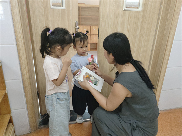 在送禮物的環(huán)節(jié),孩子們懷著激動(dòng)的心情,將自己精心準(zhǔn)備的禮物送到老師手中。有的孩子送上了親手制作的花朵,有的孩子遞上了充滿童趣的賀卡,還有的孩子送上了小手工禮盒。老師們收到禮物時(shí),臉上露出了幸福的笑容,與孩子們溫暖互動(dòng),充滿了濃濃的師幼情。