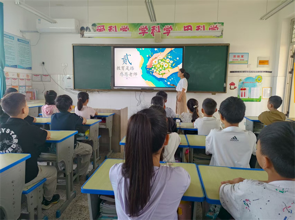 九月金秋,丹桂飄香,在第41個(gè)教師節(jié)來臨之際,大新莊小學(xué)于9 月9日下午15:00 組織全體教師與學(xué)生齊聚各班教室,召開“感恩師恩?共筑成長”主題班會(huì)。本次班會(huì)以溫馨互動(dòng)、真情表達(dá)為核心,通過多樣形式讓學(xué)生感受教師的付出,也讓教師們?cè)诠?jié)日前夕收獲滿滿的感動(dòng)與認(rèn)可,營造了尊師重教、師生同心的濃厚校園氛圍。