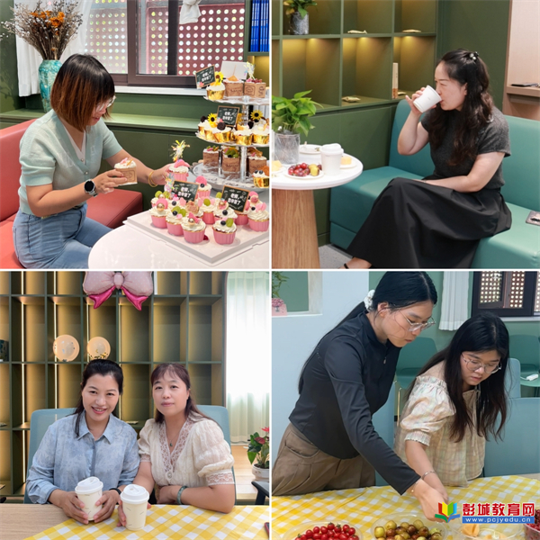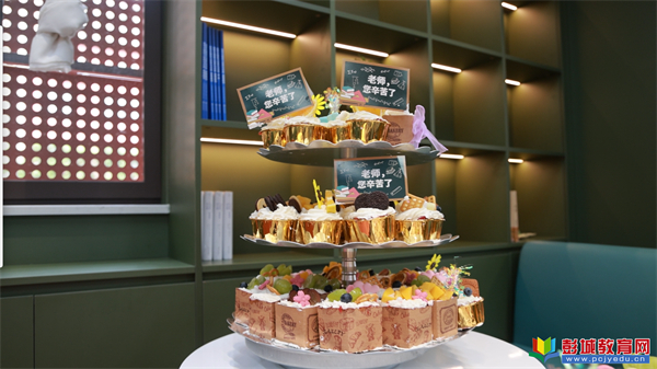 教工閱覽室一改往日的寧靜,變成了溫馨的休閑空間,這里準(zhǔn)備了香濃的咖啡、醇厚的奶茶、清新的果汁和精致的蛋糕,為老師們在課間提供了一處放松身心的美好空間。
