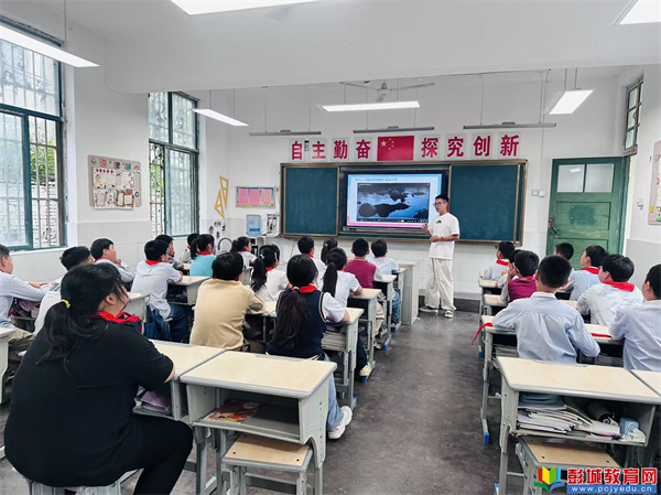 課堂伊始,韋老師以“抗戰(zhàn)中的少年英雄”為切入點,用生動的語言講述了小兵張嘎、王二小等少年在抗戰(zhàn)時期的英勇事跡,重點強調(diào)了他們身上“不畏艱難、頑強拼搏、團結(jié)協(xié)作”的抗戰(zhàn)精神?!罢强恐@樣的精神,先輩們用血肉之軀換來了如今的和平生活?!表f老師的講述讓學(xué)生們聽得聚精會神,不少同學(xué)還主動分享了自己了解的抗戰(zhàn)小故事。