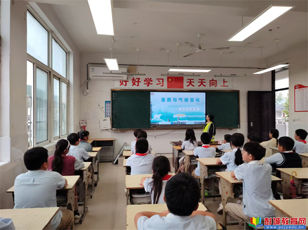 當(dāng)天下午,各班級教室化身“急救知識小課堂”,班主任結(jié)合精心制作的PPT與教學(xué)視頻,從世界急救日的起源與意義切入,逐步展開急救知識教學(xué)。班會中,教師重點講解了氣候變化引發(fā)的極端天氣(如暴雨、高溫、雷電等)下可能出現(xiàn)的安全風(fēng)險,以及對應(yīng)的急救需求——例如高溫天氣中暑后的降溫處理、暴雨導(dǎo)致溺水時的自救與互救方法、雷電天氣避險要點等,讓學(xué)生明白“急救”與“氣候變化”之間的緊密關(guān)聯(lián)。
