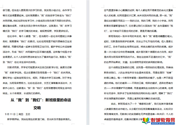 [摘要]:教育熱點(diǎn):當(dāng)九月的秋風(fēng)拂過校園,新學(xué)期的篇章正式開啟。這一次,我們以“從‘我’到‘我們’”為主題,發(fā)起教師寫作接力活動,邀請教育者執(zhí)筆,分享教育路上的教育故事。在這次寫作接力中