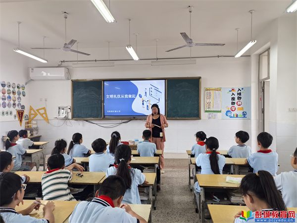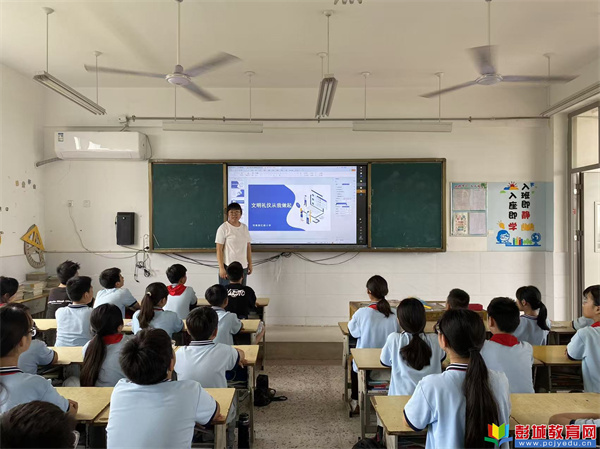 班會現(xiàn)場,老師借助生動PPT,從校園日常禮儀到社會交往規(guī)范,細致講解文明禮貌知識,讓學(xué)生理解 “禮” 的內(nèi)涵。