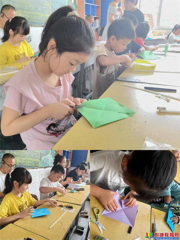 示范環(huán)節(jié),教師放慢節(jié)奏、分步講解。學(xué)生的創(chuàng)作環(huán)節(jié)更像是一場“與風(fēng)的游戲”,動手創(chuàng)作時,教室里滿是細(xì)碎的卡紙聲與歡快的討論聲:教師不干預(yù)孩子們的創(chuàng)意,只在一旁耐心輔助,每一句夸獎,都是對孩子想象力的肯定。