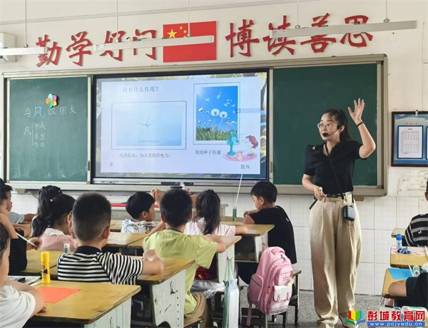 課堂伊始,教師以秋天蒲公英旅行為引,引出風(fēng)的形成、種類及作用;新授部分講解風(fēng)來自空氣流動,介紹微風(fēng)、大風(fēng)、狂風(fēng)、龍卷風(fēng)等類型,通過游戲讓學(xué)生用肢體語言表現(xiàn)不同風(fēng)力,觀察周圍事物在不同風(fēng)力下的狀態(tài)。杜老師以風(fēng)為媒,將抽象的自然元素轉(zhuǎn)化為可觸摸、可創(chuàng)作的美術(shù)語言,讓美育在靈動的互動中落地生根。