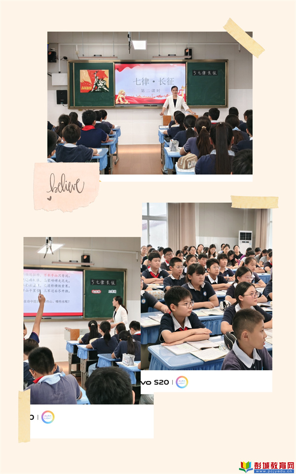 為深化語文課堂教學改革,提升教師對經典詩文的教學解讀與實踐能力,今日,我校開展了《七律?長征》主題教研課活動。本次活動由我校語文教師金麗俠執(zhí)教,各年級語文教師齊聚課堂,共同參與聽課、評課,在思維的碰撞與交流中探尋經典教學的有效路徑。