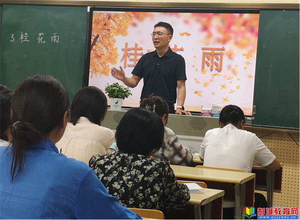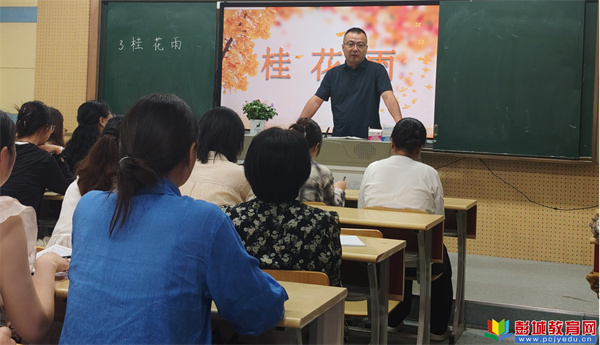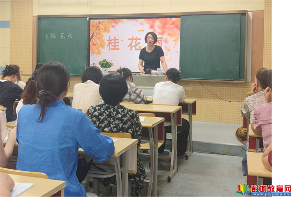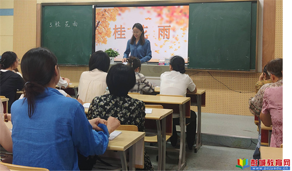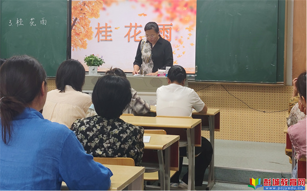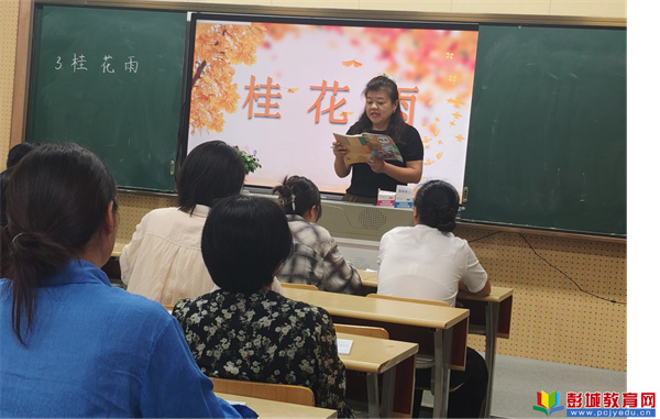 在陳丹丹主任的簡單的介紹之后,五年級語文教師賈晗藝,為大家?guī)砹艘还?jié)精彩的新授課《桂花雨》。課堂上,賈老師巧笑嫣然,循循善誘。整個課堂,氛圍和諧,孩子們和在座老師一起享受了一份閱讀大餐。