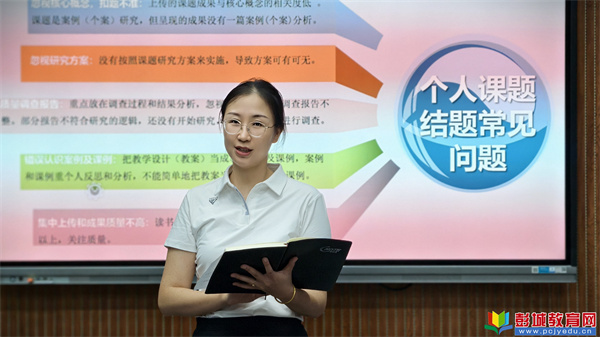 ??課題結(jié)題是研究的“收官之戰(zhàn)”,既要完整呈現(xiàn)研究歷程,更要凸顯成果的實踐價值。 培訓伊始,張羽翕主任結(jié)合徐州市課題結(jié)題最新要求,展開系統(tǒng)性集體培訓。她從結(jié)題材料的核心構(gòu)成入手,詳細解讀了研究報告、工作報告的撰寫規(guī)范,明確要求報告需立足教學實際,體現(xiàn) “問題意識、證據(jù)意識、歷程意識” 三重核心素養(yǎng)。最后,她強調(diào)了結(jié)題申報的時間節(jié)點與平臺操作流程,提醒主持人嚴格把控進度,避免因材料疏漏影響結(jié)題進程。