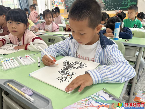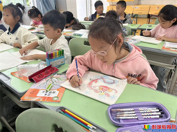 課堂上,崔華芹老師結(jié)合一年級(jí)學(xué)生的認(rèn)知特點(diǎn),以生動(dòng)的“龍文化”故事導(dǎo)入,通過展示傳統(tǒng)龍紋圖片、講解龍的形態(tài)特征,引導(dǎo)學(xué)生感受中華傳統(tǒng)文化的魅力。在創(chuàng)作環(huán)節(jié),崔老師耐心示范龍的繪制技巧,鼓勵(lì)學(xué)生發(fā)揮想象力,用豐富的色彩和線條展現(xiàn)自己心中“龍”的形象。學(xué)生們積極參與,在動(dòng)手實(shí)踐中激發(fā)了對美術(shù)的興趣,也加深了對傳統(tǒng)文化的理解。