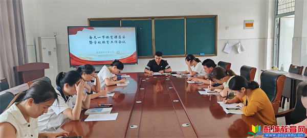 學校先是召開了每天一節(jié)體育課落實暨學校體育工作會議。