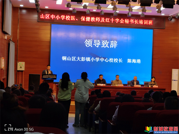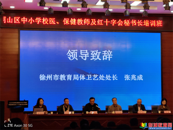 培訓首日在大彭實驗小學報告廳拉開帷幕。銅山區(qū)大彭鎮(zhèn)小學中心校校長陳海港率先致開幕辭,他強調(diào)了校醫(yī)、保健教師和紅會秘書長在守護學生健康、推動校園公益事業(yè)中的關鍵作用,為整場培訓奠定了重視專業(yè)能力提升的基調(diào)。徐州市教育局體衛(wèi)藝處處長張兆成也發(fā)表致辭,從更高層面闡述了校園衛(wèi)生與紅十字工作對教育發(fā)展的意義,為參訓人員指明了工作方向。