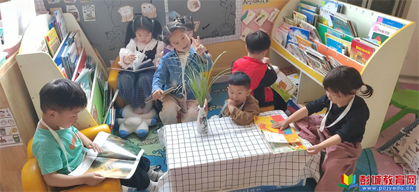 語言區(qū)開拓一片小小地空間,溫馨的讀書環(huán)境讓孩子們很快沉浸在書的海洋里。