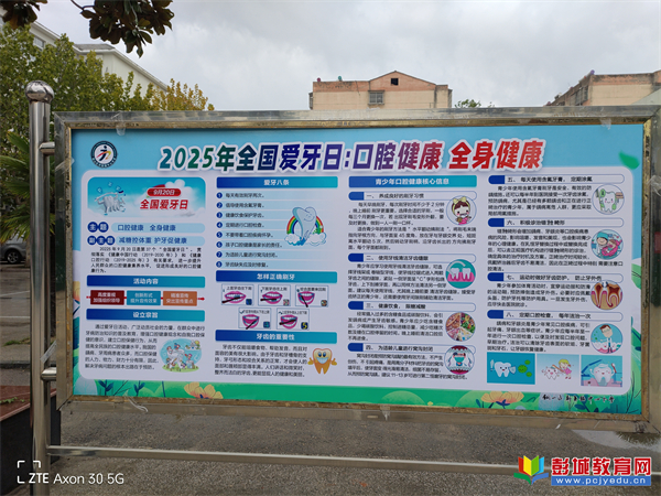 同時(shí),學(xué)校通過設(shè)置“2025年全國(guó)愛牙日:口腔健康 全身健康”主題宣傳展板,全方位普及愛牙知識(shí)。展板詳細(xì)介紹了“愛牙八條”“正確刷牙步驟”“青少年口腔健康核心信息”等內(nèi)容,以圖文并茂的形式,讓學(xué)生直觀了解口腔保健的要點(diǎn),如每天有效刷牙兩次、使用含氟牙膏、定期口腔檢查等,還特別強(qiáng)調(diào)了青少年在牙齒矯正、運(yùn)動(dòng)護(hù)牙等方面的注意事項(xiàng)。