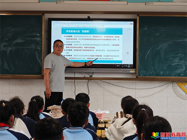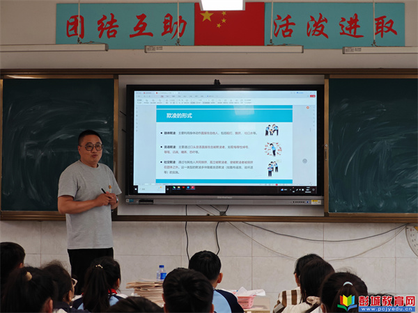 各班主任認(rèn)真地做好備課,精心制作了PPT課件。老師以玩笑、嘲笑的區(qū)分,打架、沖突和欺凌的區(qū)別引入防欺凌法治主題。告訴學(xué)生以多欺少、以強(qiáng)凌弱是不道德的行為甚至是違法行為。長期被欺凌者承受著生理、心理的創(chuàng)傷,留下很深的烙印。這種不良影響,不僅僅體現(xiàn)在被欺凌者身上,也給欺凌者的心靈成長和社會前途增添了大量的阻力。對于欺凌者而言:給他人帶來傷害,要承擔(dān)治療甚至賠償費(fèi)用,要受到學(xué)校老師的嚴(yán)肅批評教育,甚至無法繼續(xù)完成學(xué)業(yè),很多最終都走上了違法犯罪道路。對于被欺凌者而言:帶來肉體損傷甚至殘疾;易造成性格懦弱、自卑,缺乏信心和勇氣;造成心靈的陰影和傷害;厭學(xué)甚至輟學(xué)。緊接著,老師引導(dǎo)學(xué)生思考“杜絕校園欺凌”的重要性,指導(dǎo)學(xué)生交流討論,如何拒絕校園欺凌。1、提高自我保護(hù)意識。如遇事不要忍氣吞聲,要及時告訴家長或著老師;身上盡量不攜帶太多的錢物;受到暴力侵害時,立即采取靈活的應(yīng)急措施,不刺激對方,以減少被侵害程度,事后立即報案。2、提高社會交往能力。如交友要謹(jǐn)慎,少與行為不端的人聯(lián)系,不要上網(wǎng)交友,更不要網(wǎng)戀或私自會見網(wǎng)友;出外辦事不單獨(dú)行動,要與同學(xué)結(jié)伴而行,以免發(fā)生意外。3、養(yǎng)成謹(jǐn)言慎行習(xí)慣。在學(xué)校日常生活中,不要說刺激、傷害別人的話;在公共場合遇到可疑者時,設(shè)法避開;梳妝、服飾要得體,不要過分暴露;不要貪圖小便宜,不要對陌生人交付現(xiàn)金以及物品;與他人發(fā)生矛盾或沖突時,盡量用和緩的語言和手段加以處理等等,就可以提前進(jìn)行防范。